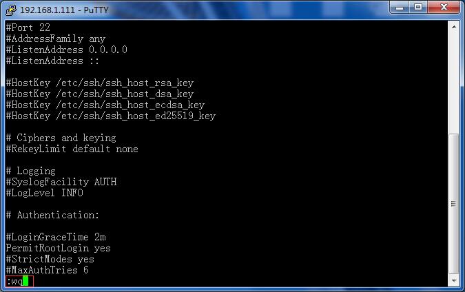 10、按键盘的下键向下翻,找到#PermitRootLogin prohibit password这一行,改为PermitRootLogin yes(前面的#号记得要去掉);