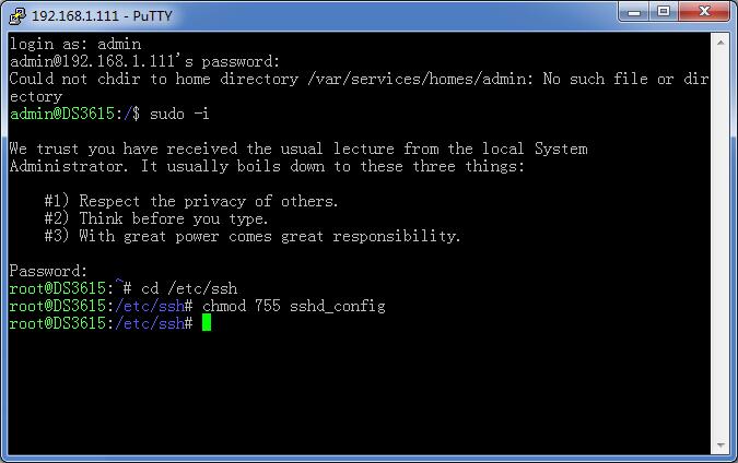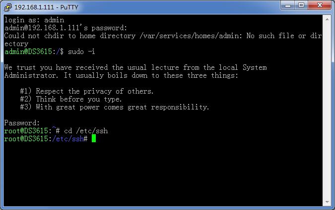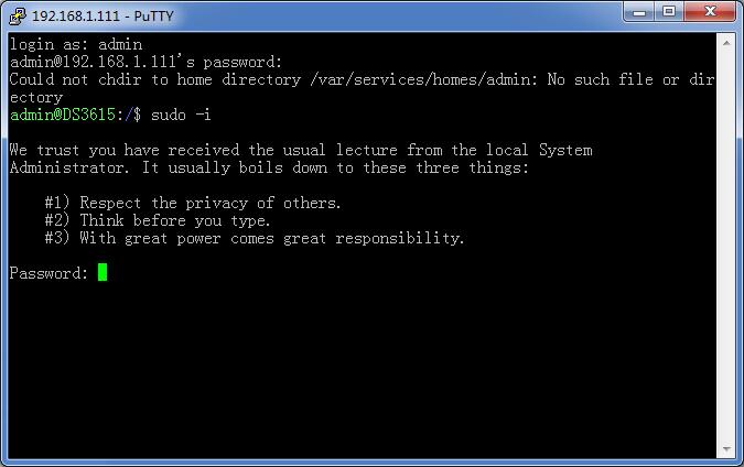 4、登录的用户名为群晖管理员账号,密码为当前管理员账号的密码(输入密码时,屏幕不会有任何显示,无需理会,输完按回车即可);