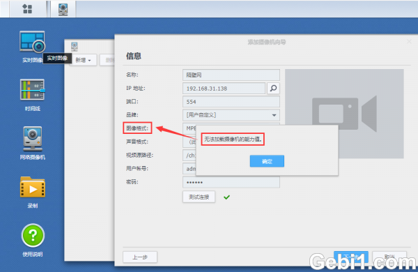 6、如下图出现无法加载摄像机能力值,那么图像格式那就要重新选过其他编码