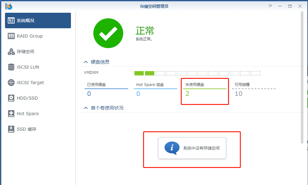 本文使用了VM进行演示 所以作为引导的硬盘可见,修改过U盘引导的黑群辉是只能看到硬盘的