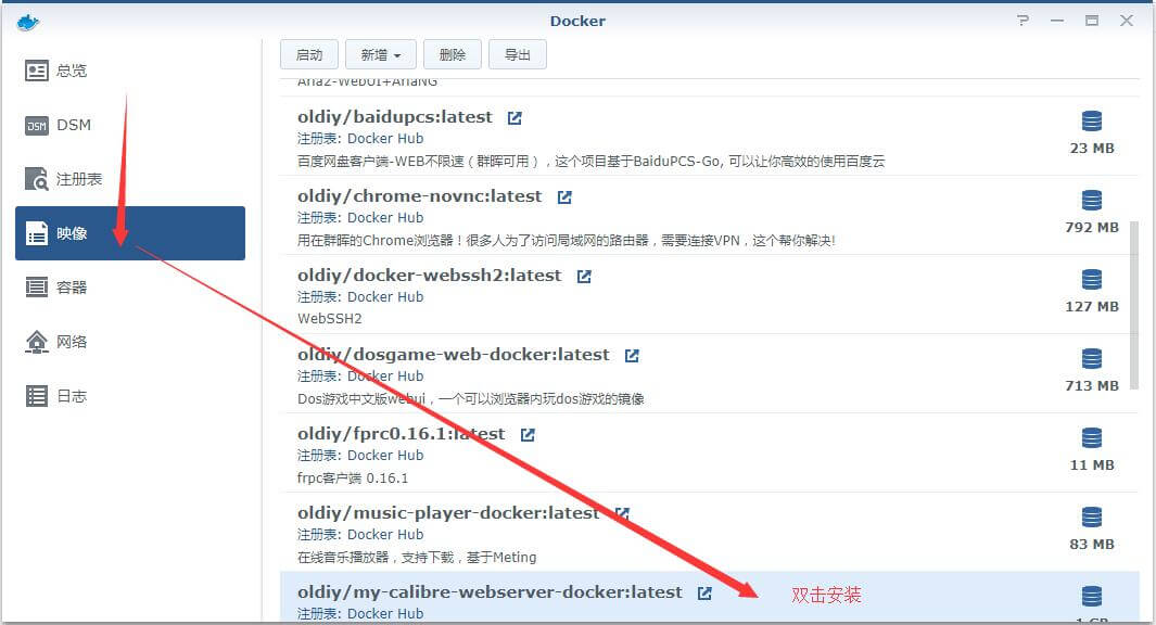 一、打开群晖Docker—注册表—搜 oldiy 找到 my-calibre-webserver-docker ,右键下载