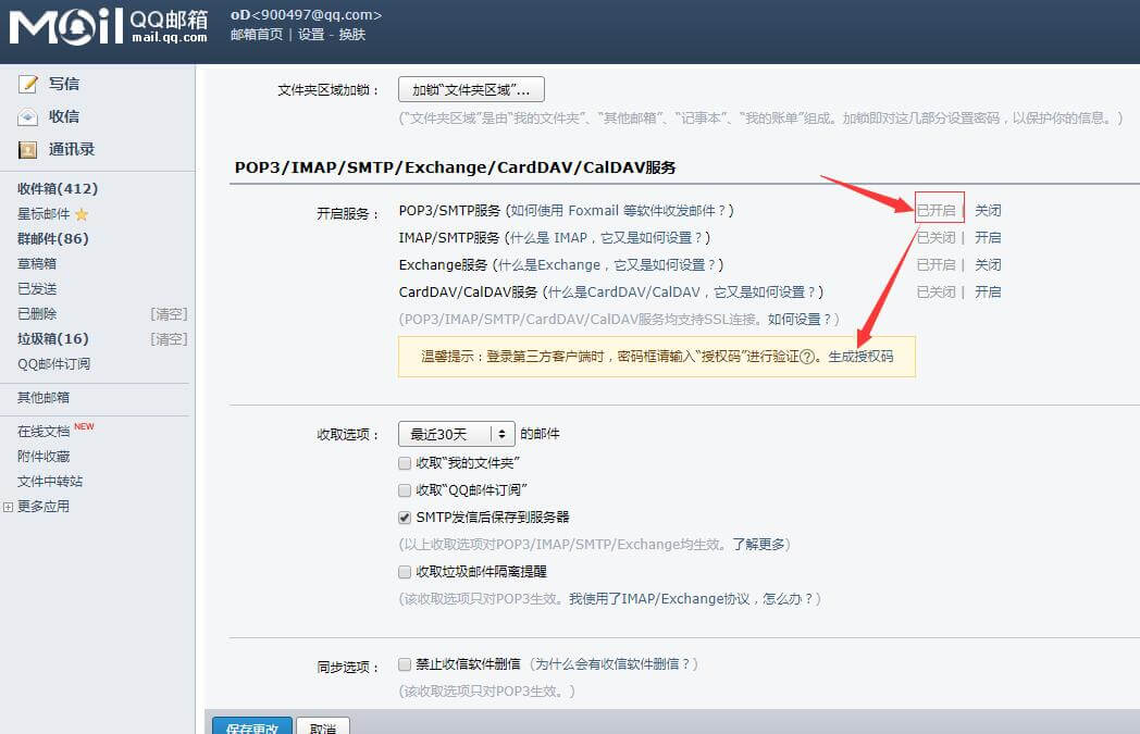 七、容器跑起来之后,我们修改一下smtp,用来推送Kindle。如果使用QQ邮箱,需要打开smtp服务,然后获取授权码(相当于密码)