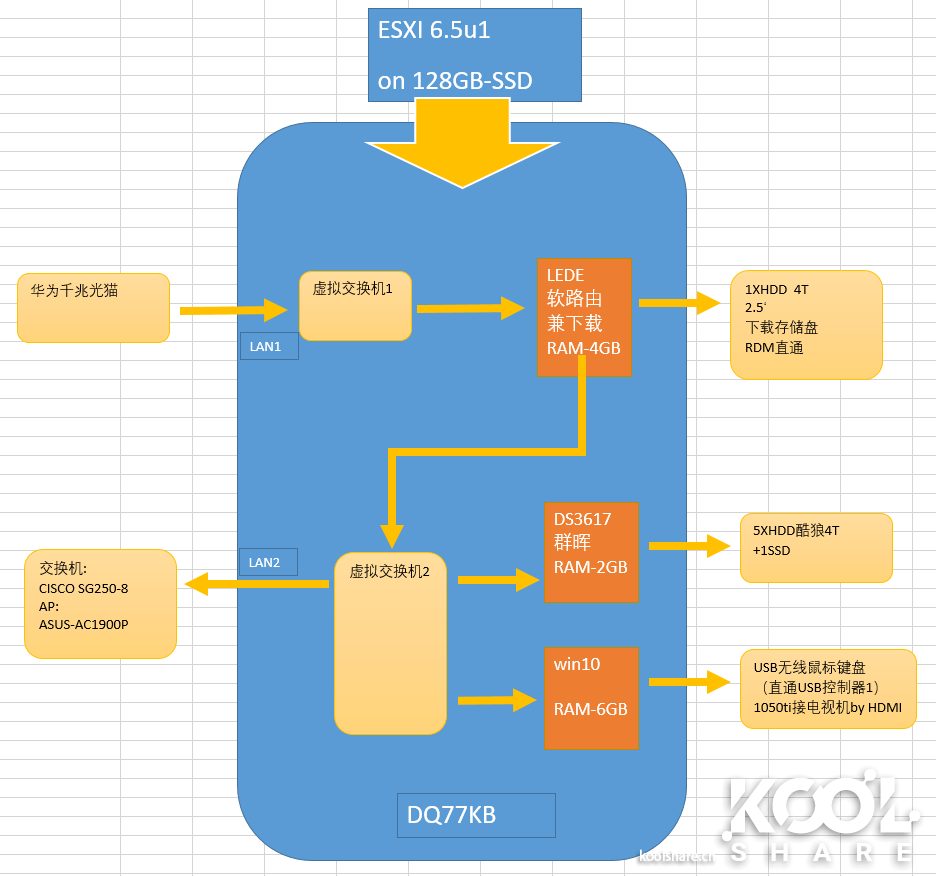 1,ESXI运行效率很高,只要部署得当,采用低功耗运行模式(BIOS要设置C3),整个系统的功耗可以做的更低