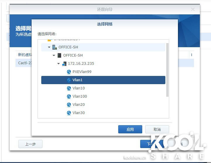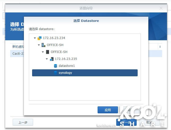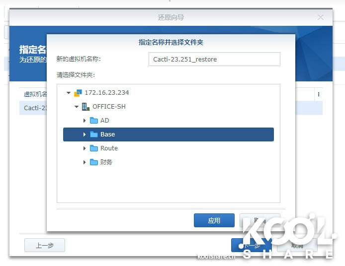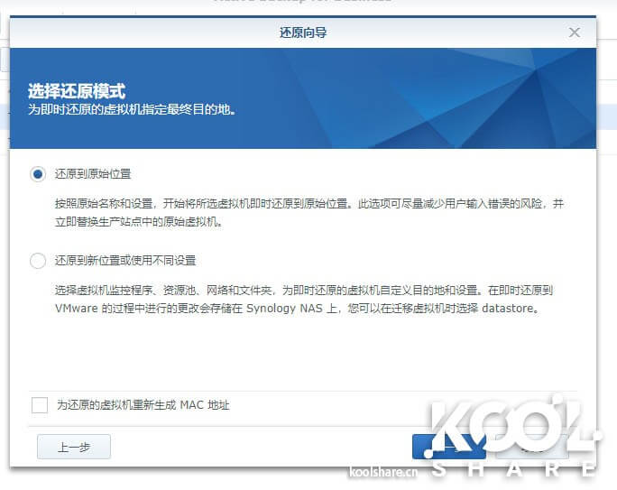可以在Active Backup for Business中指定还原到哪台宿主机或者直接还原在集群上。