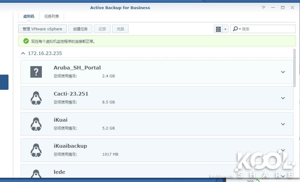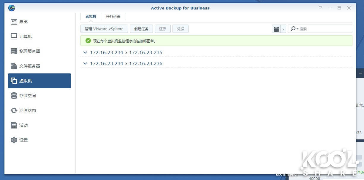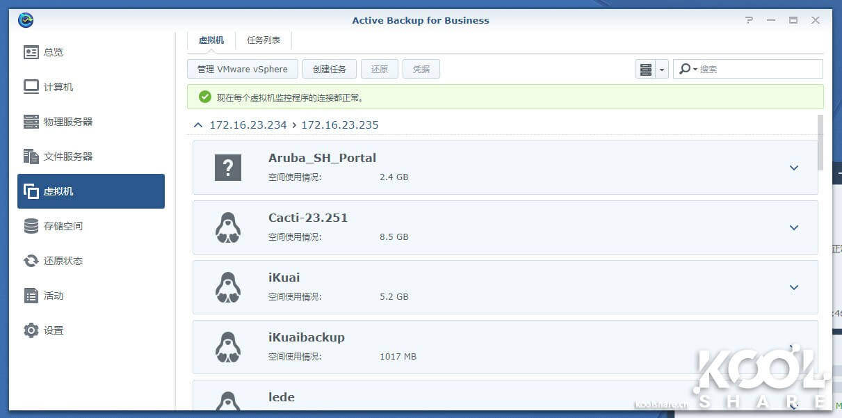 然后在Active Backup for Business中看到这台ESXi中的虚拟机,接下来的备份任务,ESXi和vSphere基本相同。