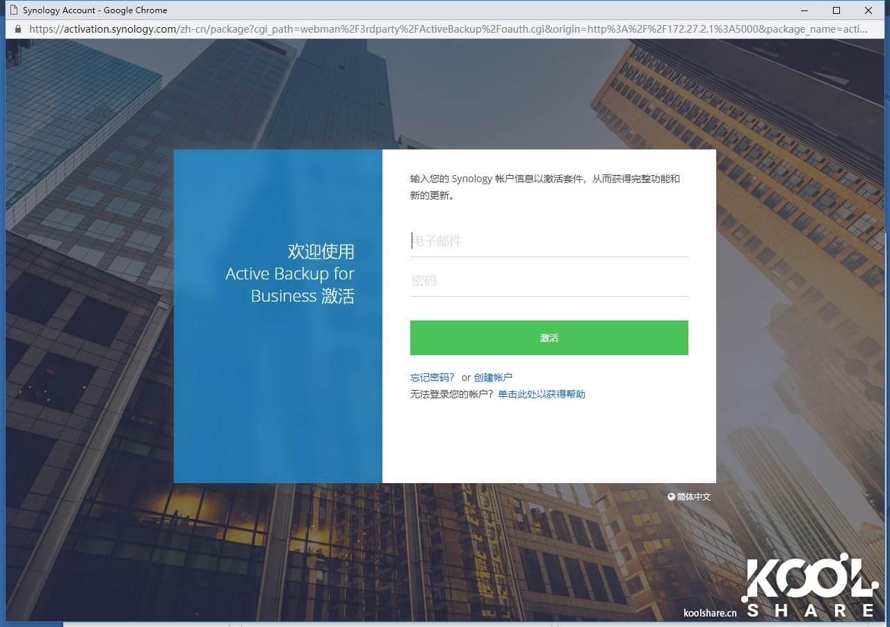 和其他套件不同的是,Active Backup for Business需要激活后才能使用。如果你使用的是黑群晖,可以联系博主洗白(博客右下角微信二维码),洗白以后可以激活。
