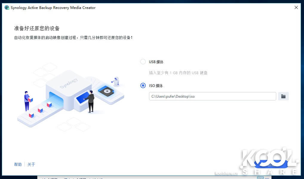 Synology提供了创建恢复U盘或者恢复ISO光盘的工具,可以在Synology官网下载到。这里以创建ISO镜像为例,选择镜像要存放的位置。