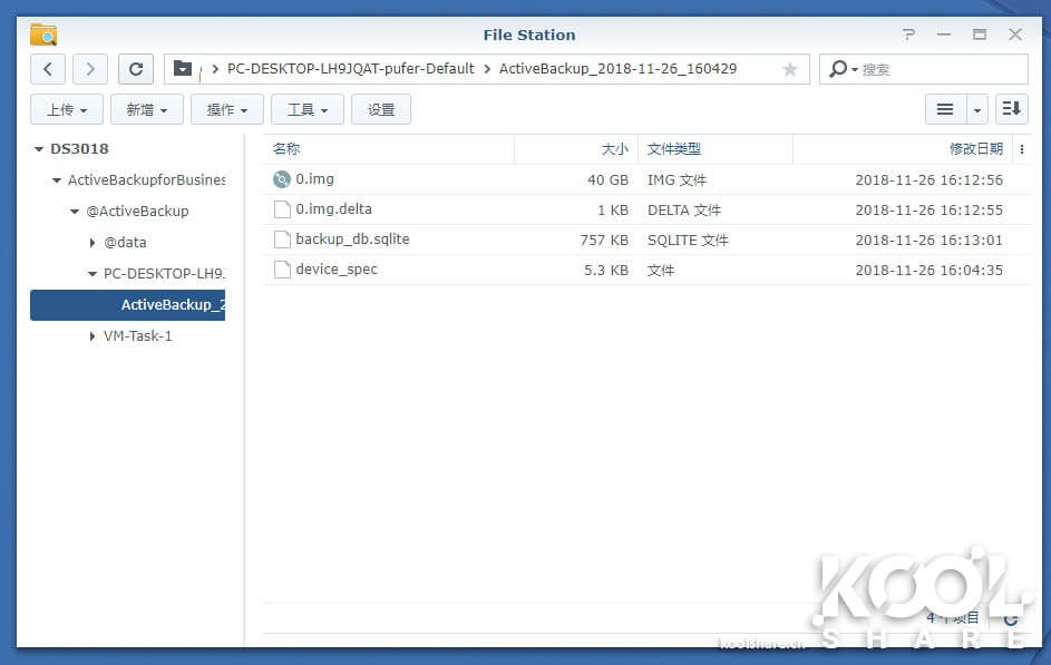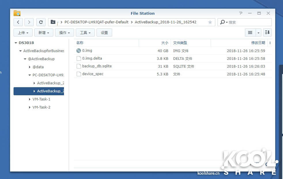 备份完成后,可以在FileStation中看到,备份是以一个img文件存在在NAS中