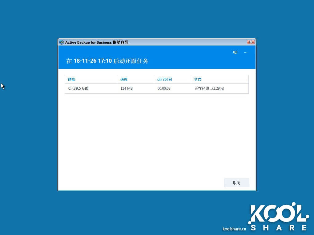 在Active Backup for Business还原进度中可以看到虚拟机还原的进度。