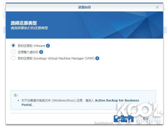 Active Backup for Business可以直接还原虚拟机到VMWare中