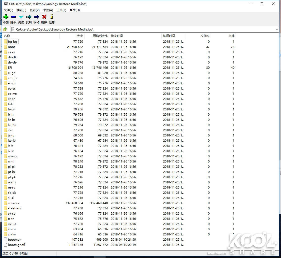 我们还是用FileStation看下第二次备份的数据,在FileStation中还是一个40G的大文件,但是因为利用BRTFS的COW特性,这个文件是占用空间只是差额部分,而不是完整的文件。