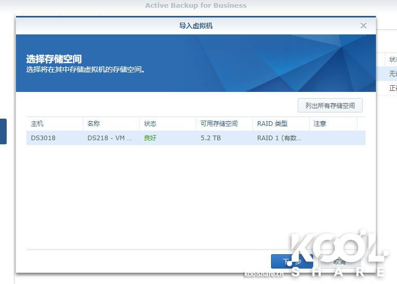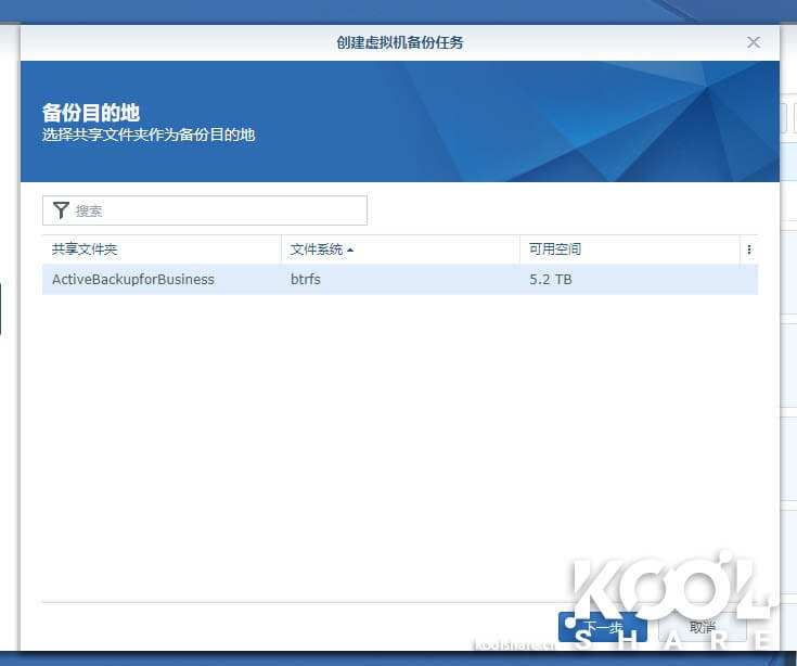 同样需要使用Active Backup for Business备份虚拟机,也是要创建备份任务。我们这边创建一个任务,选择备份目的存储空间。