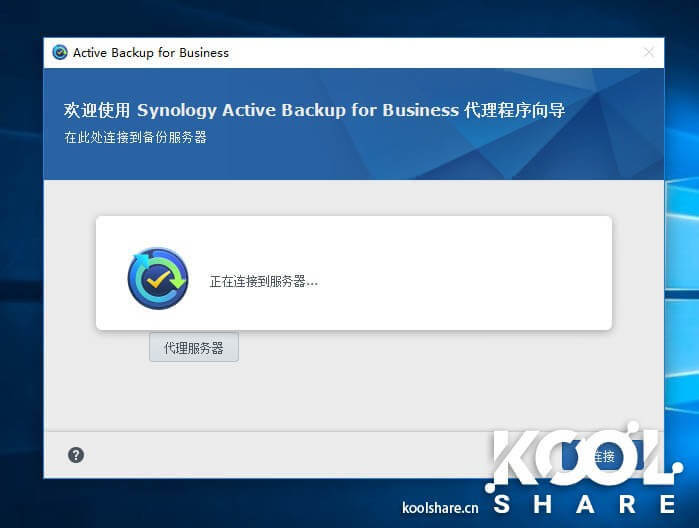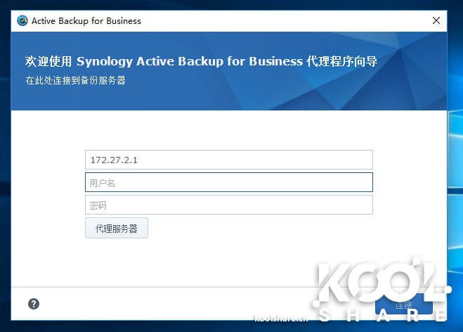 Agent启动后,首先要输入NAS的服务器地址和用户账号信息。因为Active Backup for Business备份时候需要传输大量数据,这边不建议使用QuickConnect的方式连接。