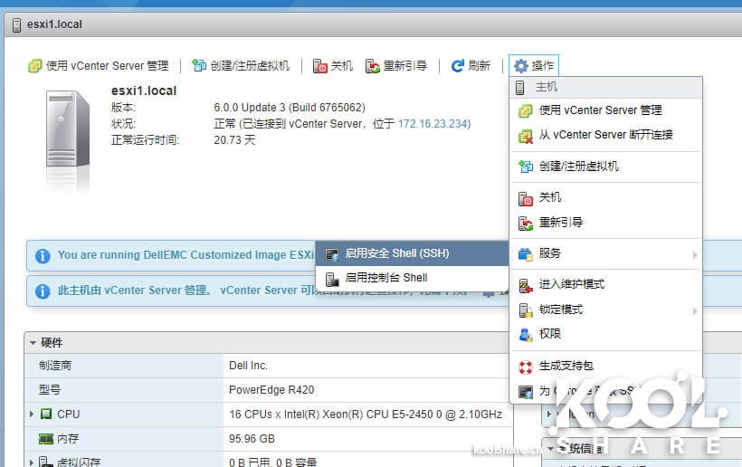 不同的是,免费版本的ESXi会要求开启shell和SSH服务,用于对ESXi的控制。