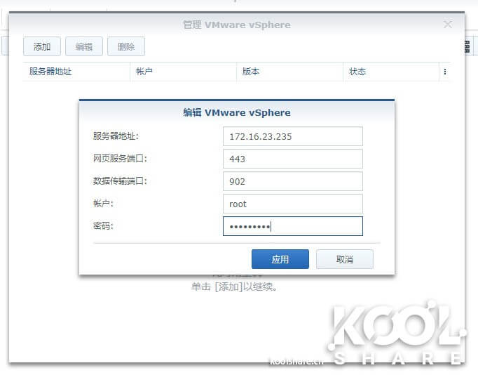 添加服务器,ESXi和vSphere相同都是输入连接信息。