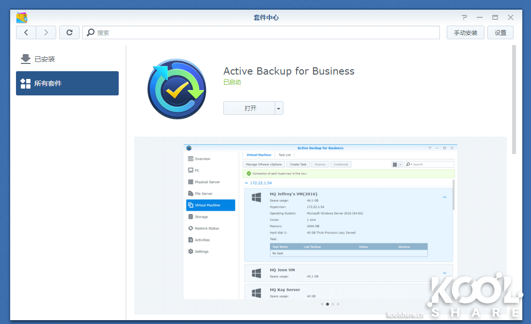 Active Backup for Business的安装和普通套件一样,在套件中心就可以安装。
