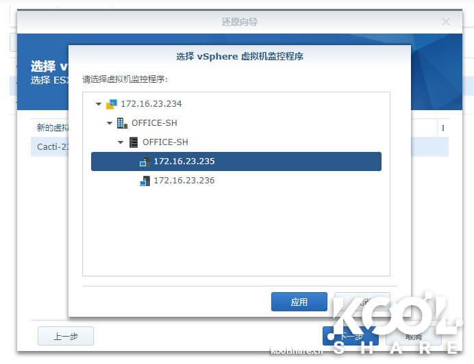 直接弹出VMM虚拟机导入对话框,选择在VMM中哪台宿主机还原虚拟机