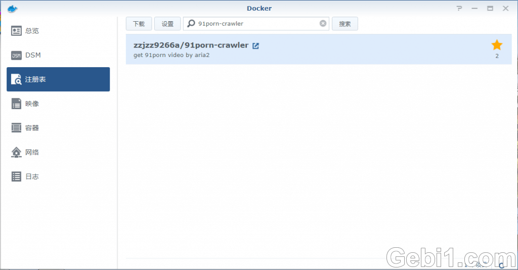进入群晖的Docker,在注册表里搜索关键词“91porn-crawler”,双击下载。