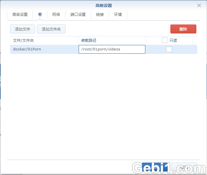 在【卷】选项里,添加文件夹映射。【你指定的本地路径】 装载路径【root/91porn/videos】