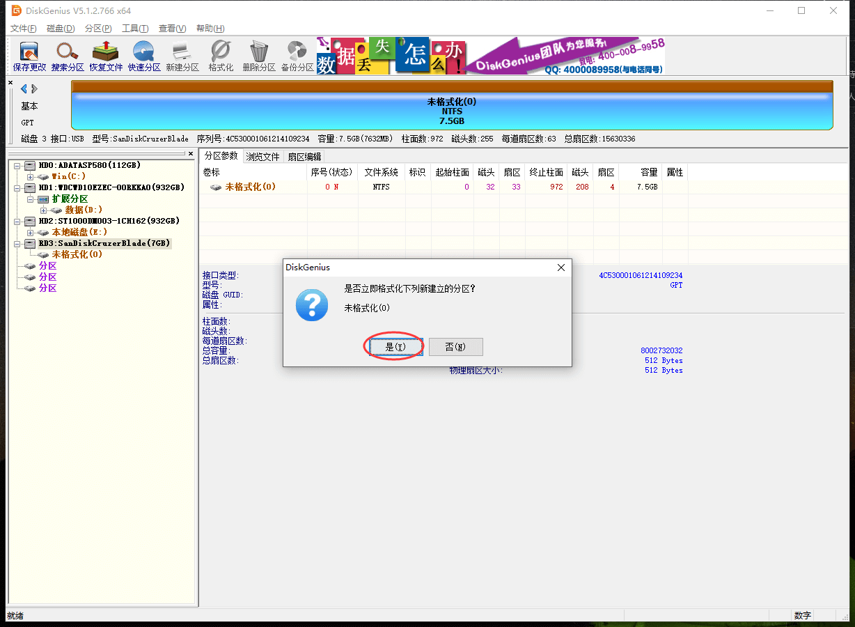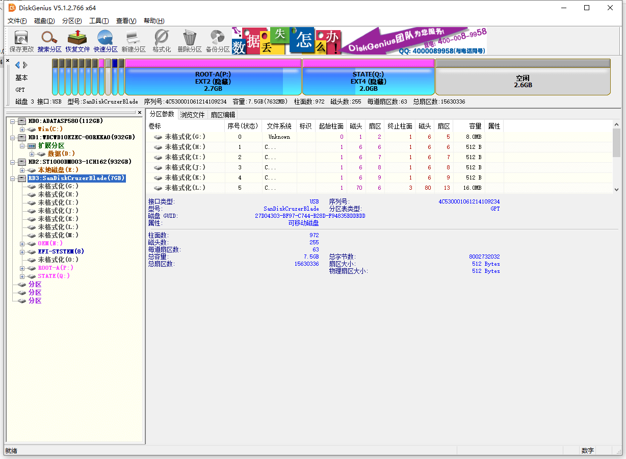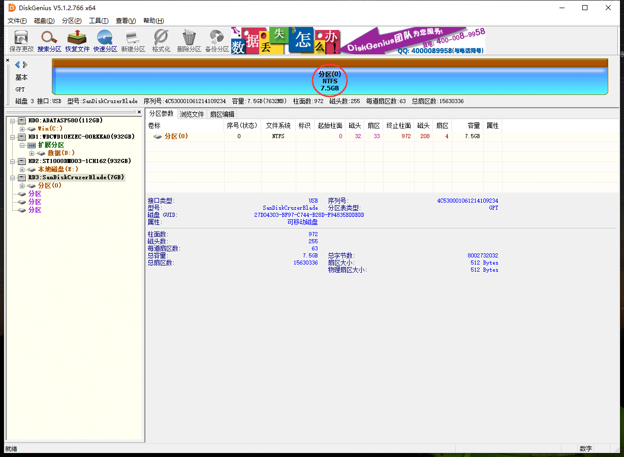 1、DiskGenius:删除硬盘分区的工具,本教程用DiskGenius V5.1.2.766_x64;