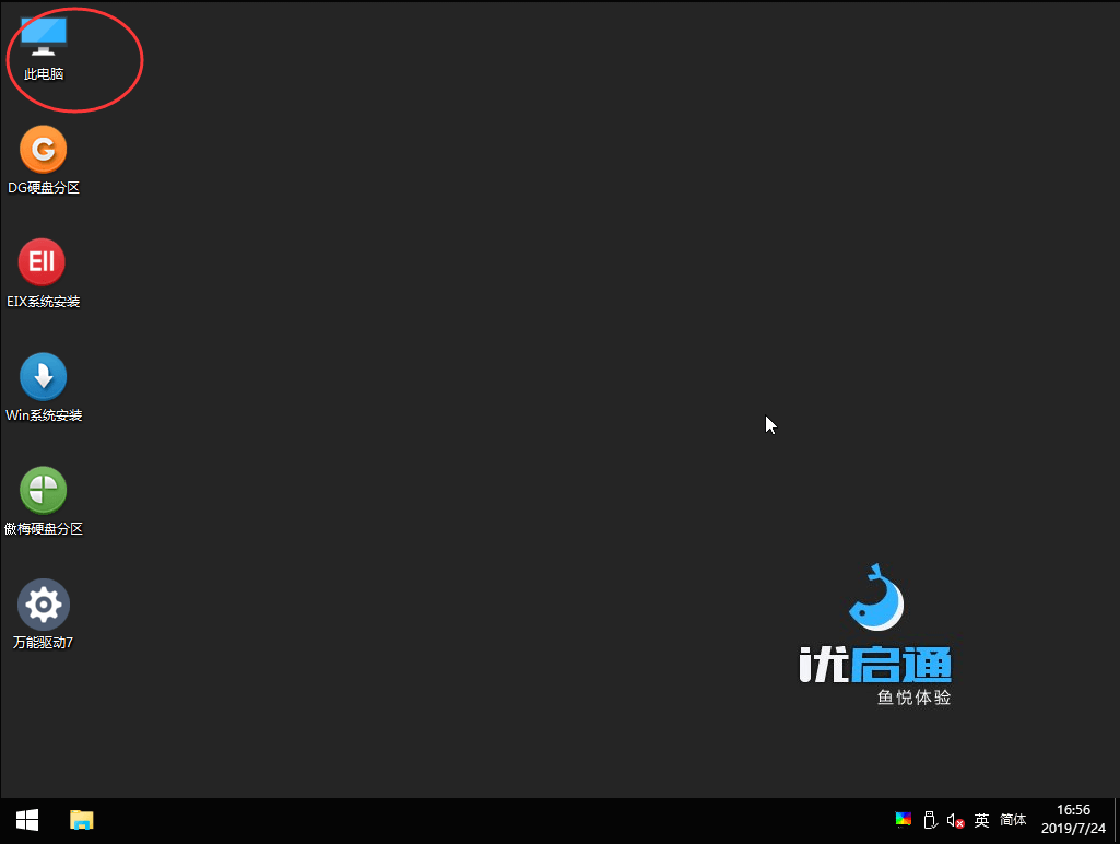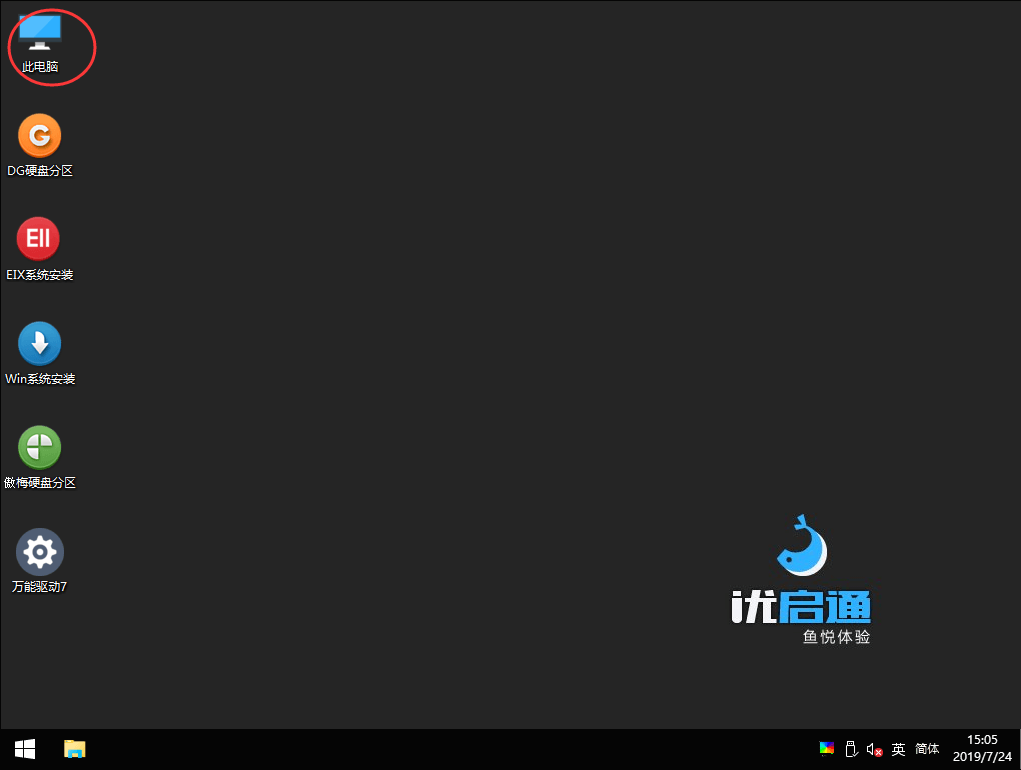 1、进入PE系统桌面,双击打开“此电脑”;