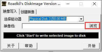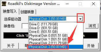 16、在电脑上运行Roadkil's DiskImg,在“选择驱动器”的下拉菜单,选择50MB这个;