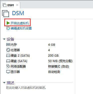 这里需要说明一下:这里显示的磁盘1、2,均为群晖虚拟机里面的磁盘(对应为50MB的引导盘和200G的存储盘),并非是你在Win系统看到的物理硬盘。