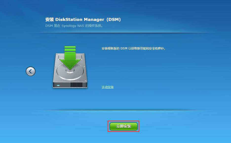 这里需要说明一下:由于写此教程的时候,当前DS3617最新版本为6.23-25426,当前的引导支持6.23-25426版本,所以可以点“立即安装”就默认下载的是6.23-25426;假如以后有新版本出来了,点“立即安装”就不是6.23-25426了,万一当前的引导不支持更新的版本,安装完成后系统就进不去了,建议到官网下载6.23-25426的PAT安装包,然后点“手动安装”,手动上传6.23-25426的PAT安装包进行安装。