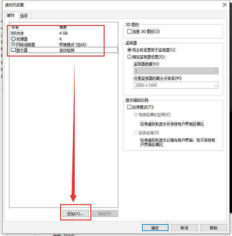 27、保留内存、处理器、网络适配器、显示,然后点“添加”;