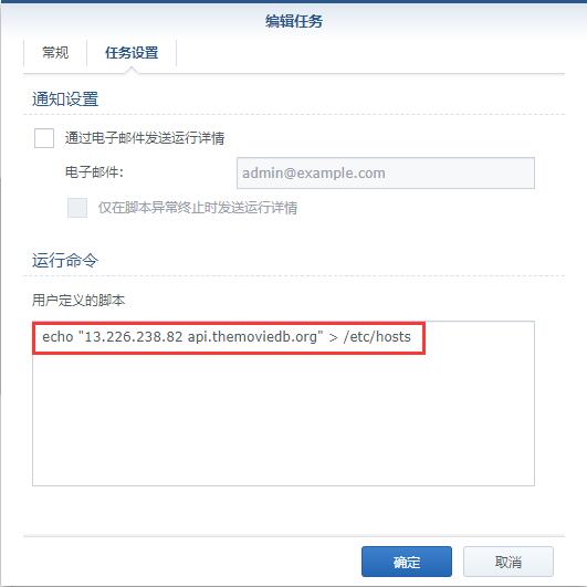 说明:域名“api.themoviedb.org”主要用来刮削电影,域名“api.thetvdb.com”主要刮削电视剧,把以下内容放到群晖控制面板的任务计划里面运行一次 ,然后进入video/emby/plex,重新索引一次。