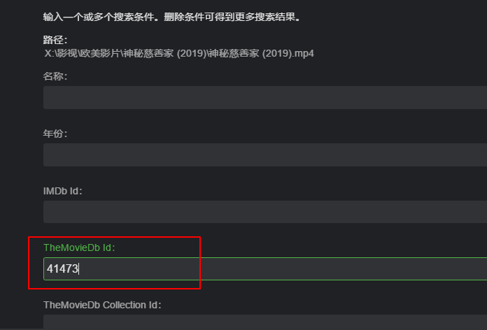 只需要在 TheMovieDb Id:里面填写41473即可,其他的都不用去填写。
