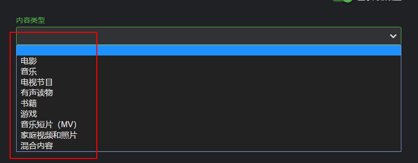 书籍,这个我没测试成功过,搞不懂啥用途,官网也没找到啥信息,用EMBY的人群,大多数都是添加电影和电视节目,其他的类别很少。