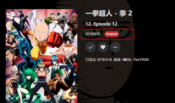 开启后,EMBY会连接到 TheMovieDb 和 TheTVDB 数据库中,搜索电视节目的全部信息,包括未发布的信息,比如日本动漫中,会显示这一季总共有多少集,下一集的发布时间等等。