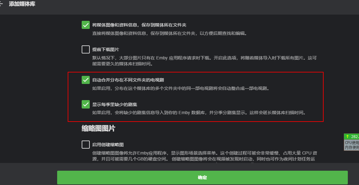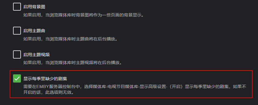 如果启用,会将缺少的剧集信息导入到你的 Emby 数据库,并分季分剧集显示。这样会延长媒体库扫描时间。