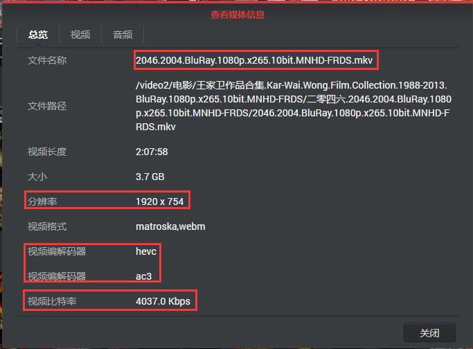 1、视频编码为hevc,分辨率为1080P,文件格式为mkv;