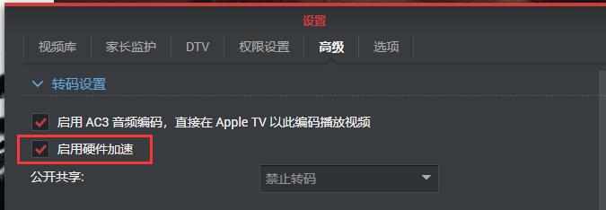 1、群晖DS VIDEO里面,把“硬件加速”打勾,就可以启用硬件解码;
