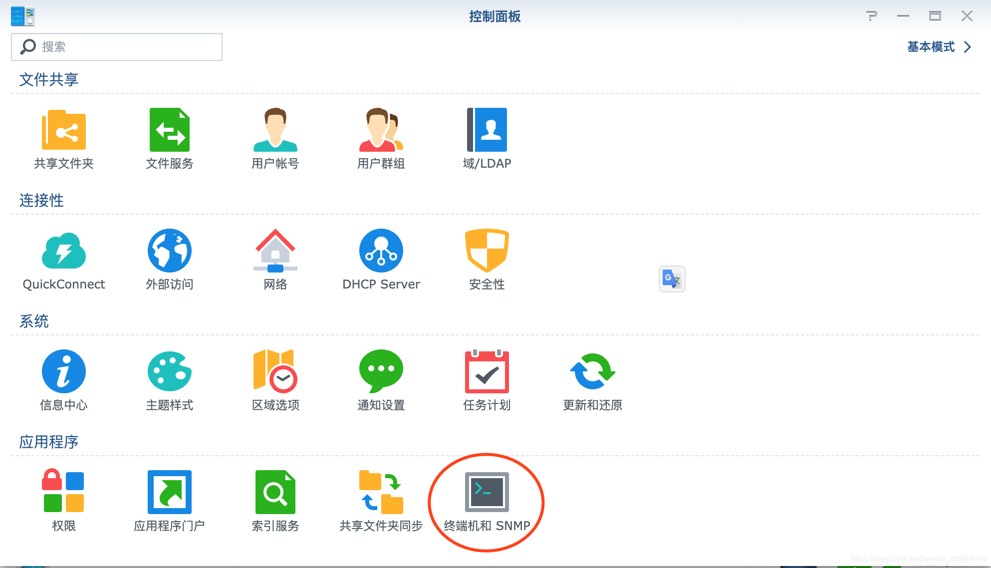 打开"控制面板"-“终端机和SNMP”