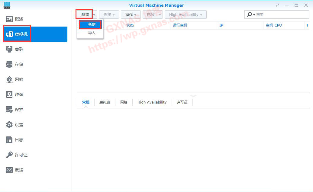 二、在群晖套件中心安装好Virtual Machine Manager套件(如果已经安装的,此步骤可跳过),打开;