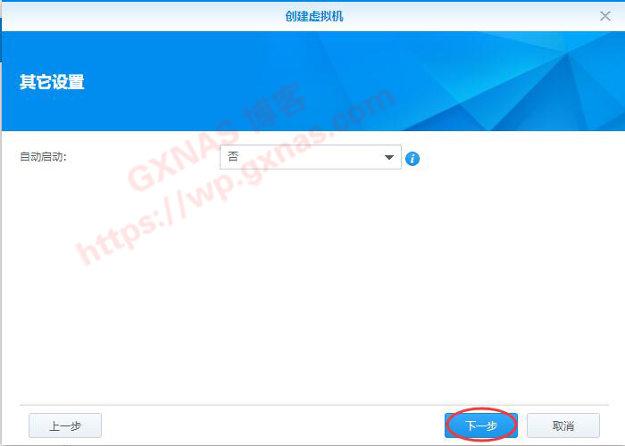 十二、自动启动,我这选否(如果你需要自动启动DSM7.0,请选是),下一步;