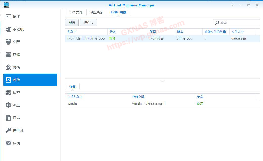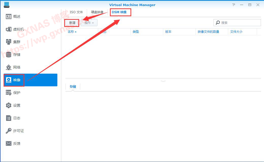 三、在左边菜单选择“映像”,在右边菜单选择DSM映像,新增;