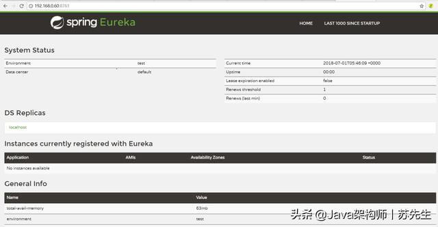 5、访问http://Docker宿主机IP:8761/,可正常显示微服务Eureka Server的首页