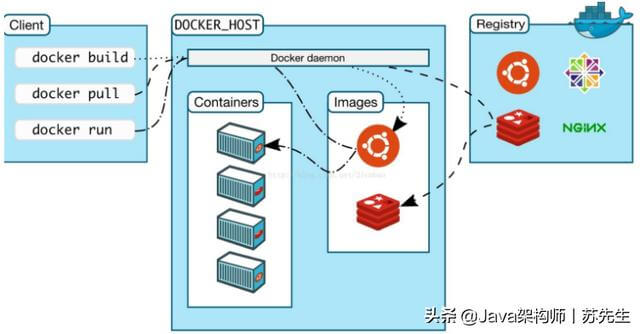 Docker客户端是 Docker的用户界面,它可以接受用户命令和配置标识,并与 Docker daemon通信。图中, docker build等都是 Docker的相关命令。