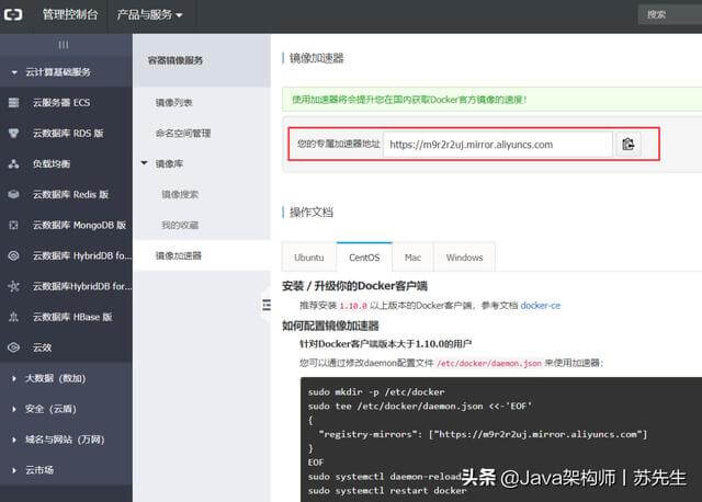 我们可以借助阿里云的镜像加速器,登录阿里云(https://cr.console.aliyun.com/#/accelerator)