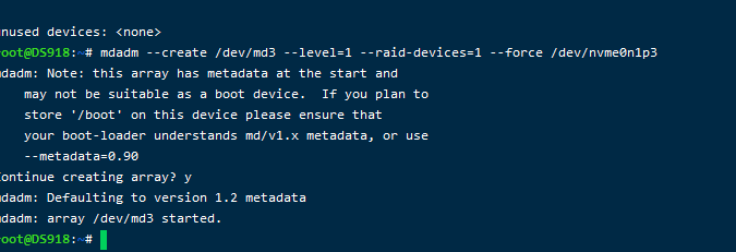 #需要注意的是:需要在上一步骤显示的储存池数字基础上加1,作为nvme的存储池(所以是md3)