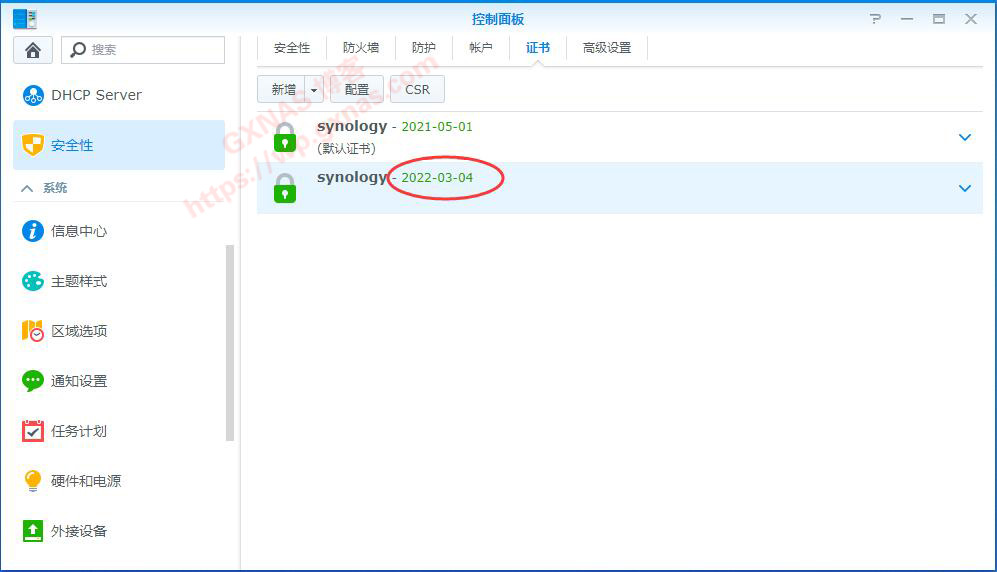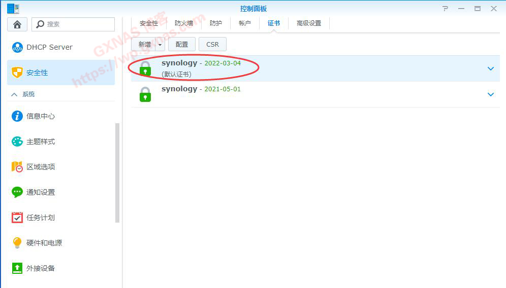 今天登录群晖无意中看到:天啊,自带的证书准备要过期了,可用时间已经不足2个月了。。。