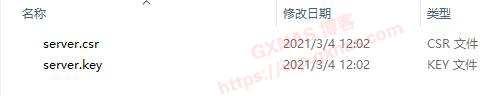 到电脑上找出刚刚下载的压缩文件,解压出来看看,看到有两个文件:server.csr和server.key。