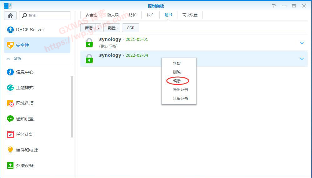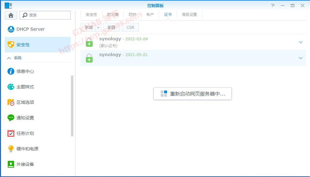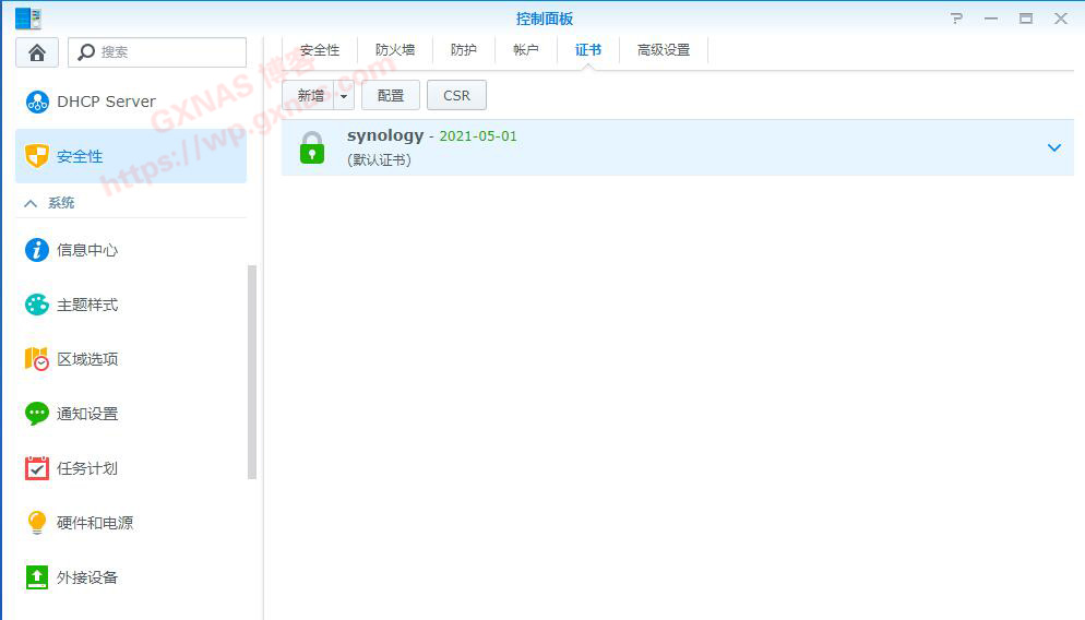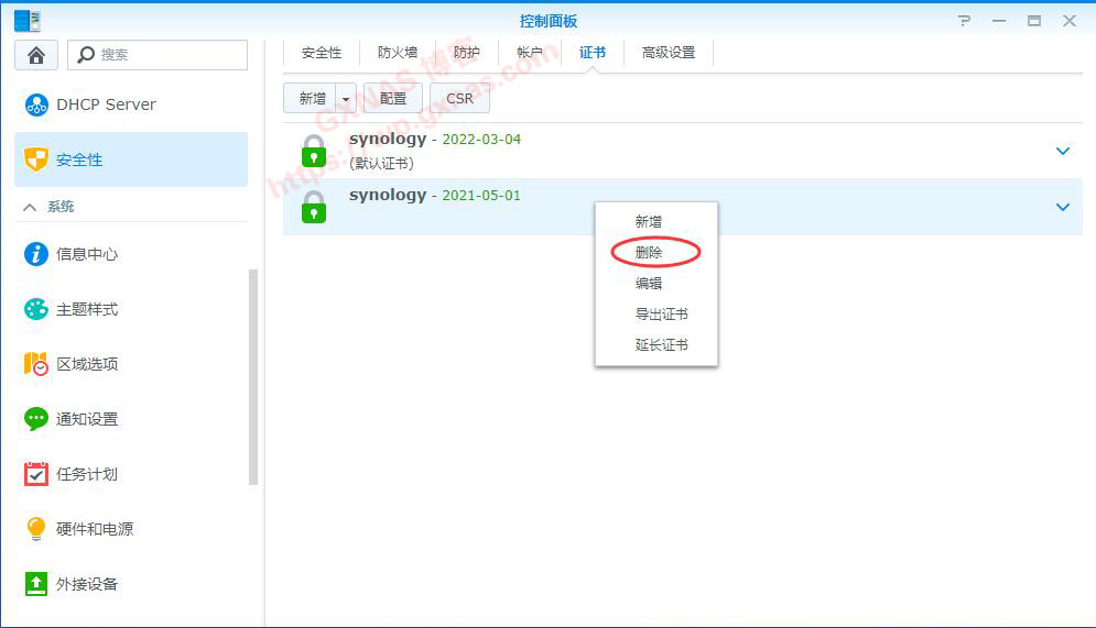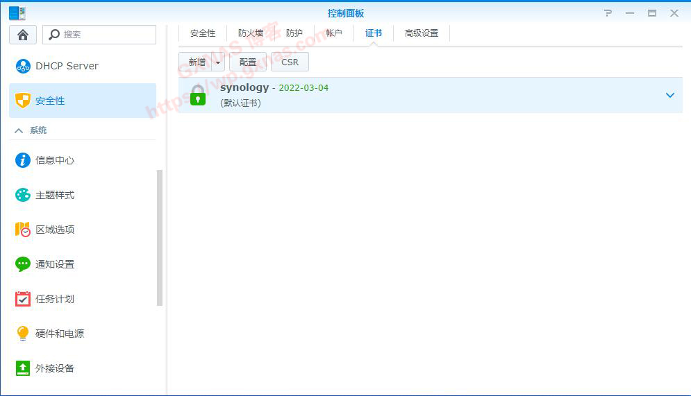 PS:此证书为群晖系统内部使用的自签名证书,并非域名证书。如果需要申请域名证书或者延长域名证书,可以看另外相关的文章: