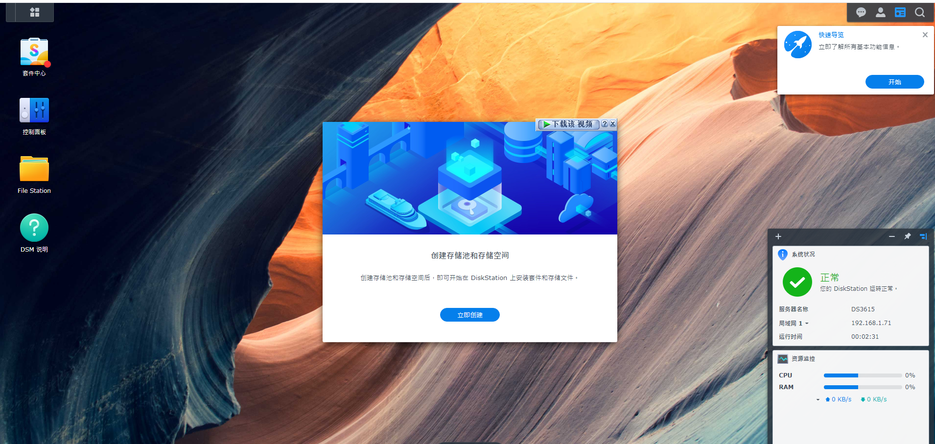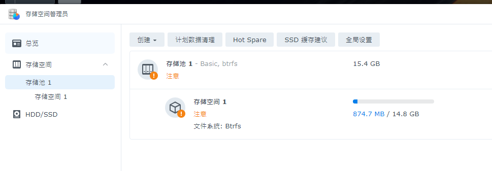 11、群晖启动好了以后,在存储空间管理员建立存储空间。