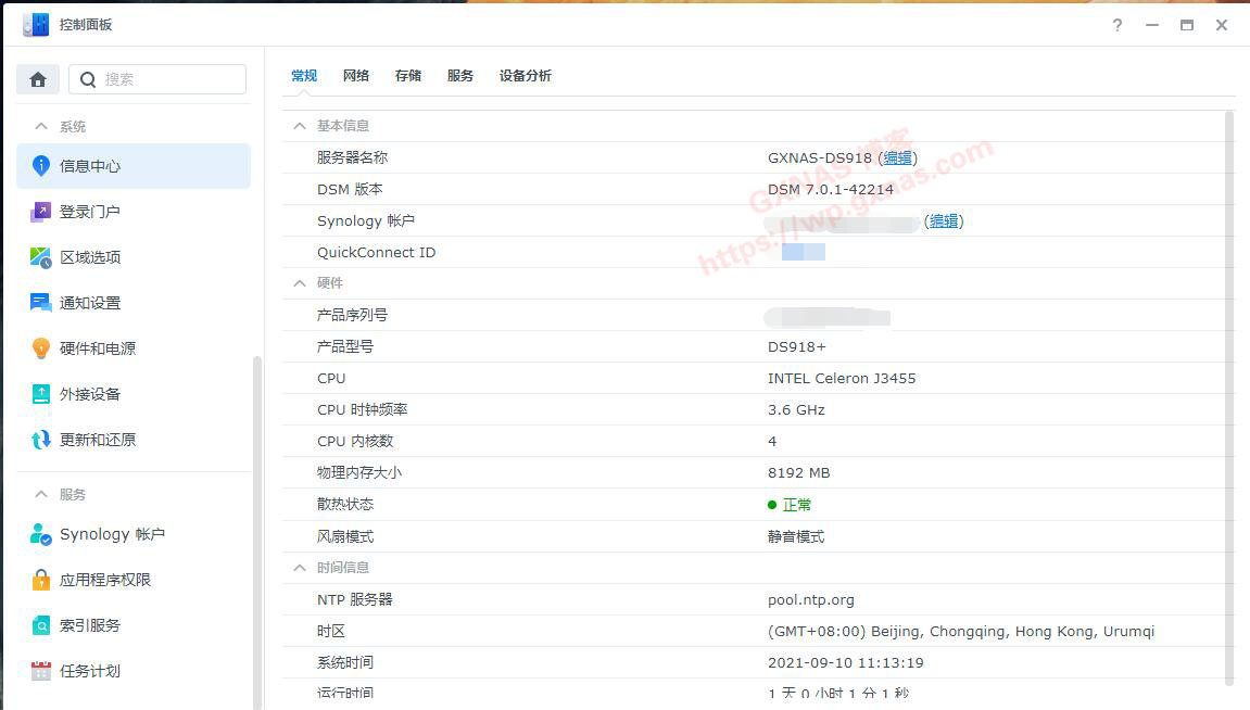 6、运行任务计划后,重启一次群晖,再次进入系统后,信息中心就显示正常了。