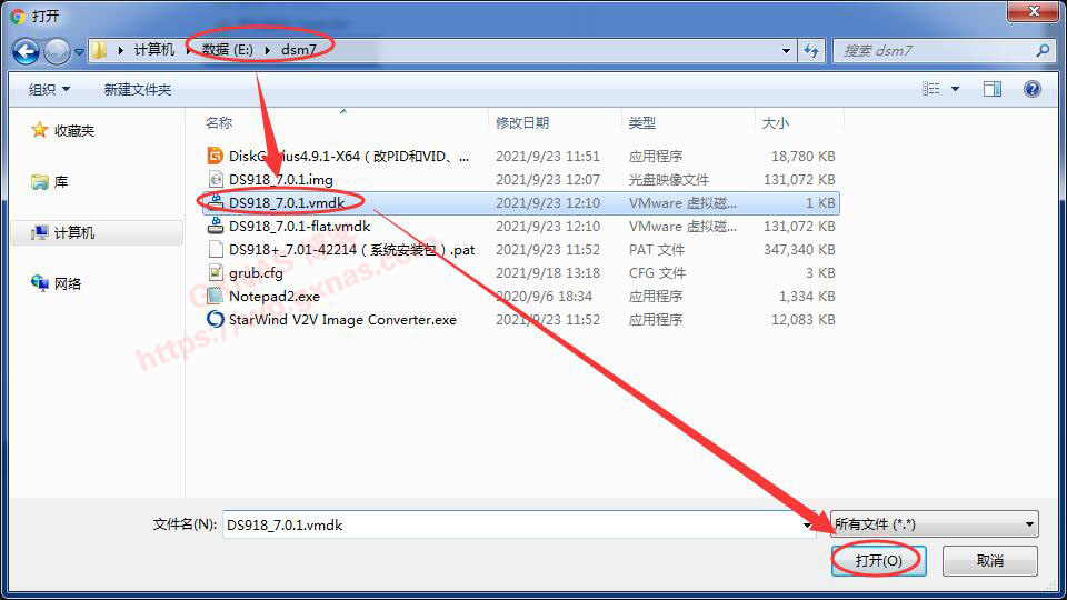 37、找到刚才用StarWind V2V Image Converter转换好的DS918_7.0.1.vmdk,打开;